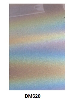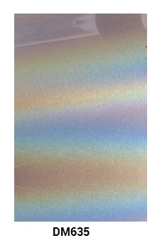 Silver DM635 and DM620 pigments create the appearance of a diffractive rainbow moving over a silvery metallic base. DM635 offers the most dramatic effect with an average particle size of 35 microns.